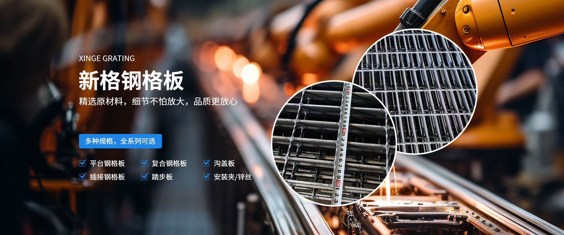 河南新格重工有限公司成立于2007年,占地36000余平方米,是河南省專注于鋼格板設計、制造、銷售的加工制造企業。公司一貫秉承“打造全國鋼格板基地”的企業理念,在“創新、務實、奉獻”的企業精神指引下,逐漸成長為一家具有現代化管理理念、優良的企業文化及靈活的經營機制的創新型加工制造企業。  公司采用目前世界上前衛的制造技術,由計算機控制的鋼格板壓阻焊機制造,機械手自動將橫桿橫放在均勻排列的扁鋼上,通過強大的電焊功率和液壓力將橫桿壓焊入扁鋼內,從而得到焊點固定、穩定性高、強度大的高質量鋼格板。公司擁有成熟的CAD設計、制造技術以及優良的工程設施經驗,獨立自主的進出口貿易資質,通過ISO9001資質體系認證。所生產的鋼格板系列產品從外觀質量、尺寸公差、焊接質量等方面均滿足客戶的需求。公司可按中國鋼格板YB/T4001.1-2007標準生產,也可按符合美國ANSI/NAAMM(MBG531-88)、英國BS4592-1987、澳大利亞AS1657-1985等標準進行生產。產品暢銷全國三十多個省、市、自治區,并有部分產品出口到國外,給上百家大型企業提供了堅實可靠的服務,得到了廣大用戶的一致肯定?! 」臼冀K堅持“視品質為生命,視顧客為上帝”的經營宗旨,依托成熟的技術力量及良好的企業信譽,竭誠為廣大用戶提供高質量的產品及全方面的售前、售中、售后服務?! ∥覀內w新格人將帶著真誠的期望,一如既往地以具有競爭力的價格、高質量的產品為工程項目提供盡善盡美的服務,并希望與用戶單位建立長久有好的合作伙伴關系!
